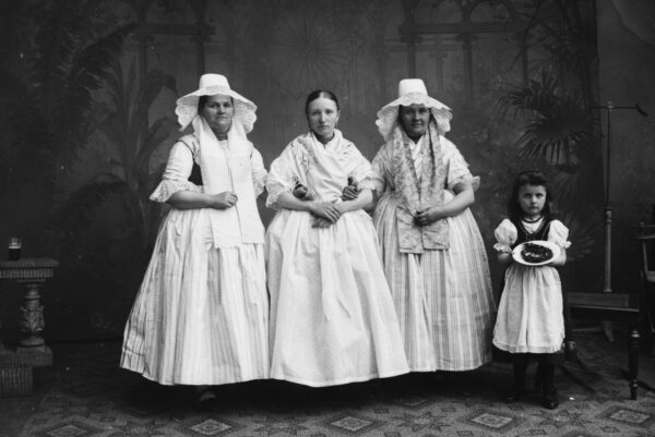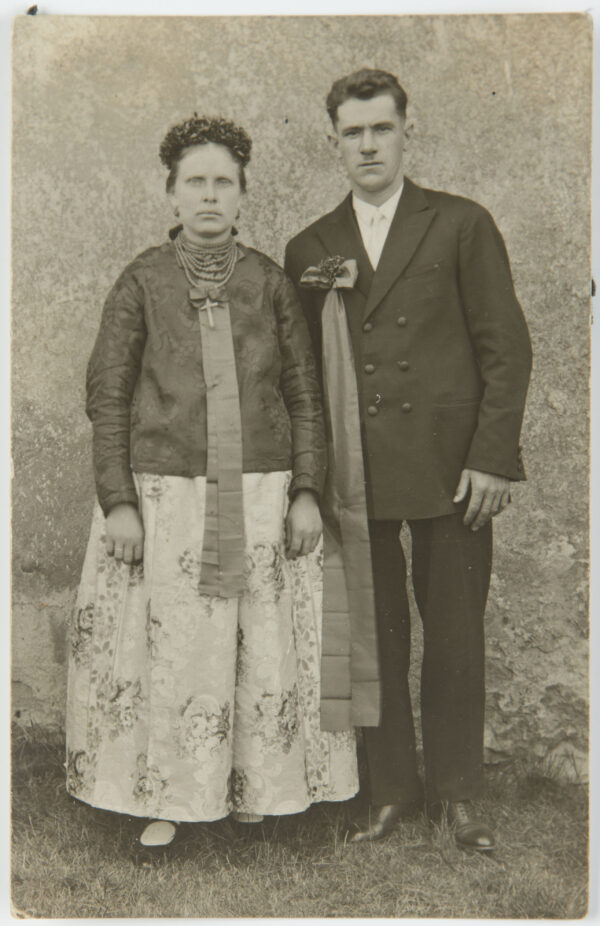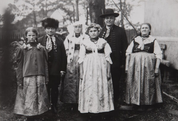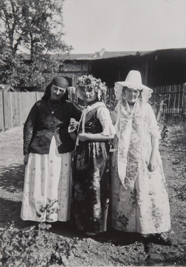 Do początku XX wieku odzież codzienna była prosta, szyta z tkanin samodziałowych lnianych i wełnianych. Kobiety do pracy w polu zakładały płócienną koszulę „ciasnochę”, czyli kawałek płótna opasujący piersi na jednym lub dwu ramiączkach, do którego doszyta była marszczona spódnica. W pasie wiązały płócienną zapaskę, najczęściej farbowaną na granatowo, na głowie miały białą płócienną chustkę.