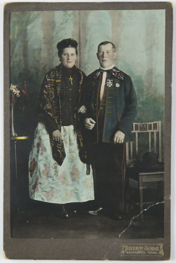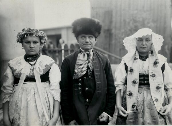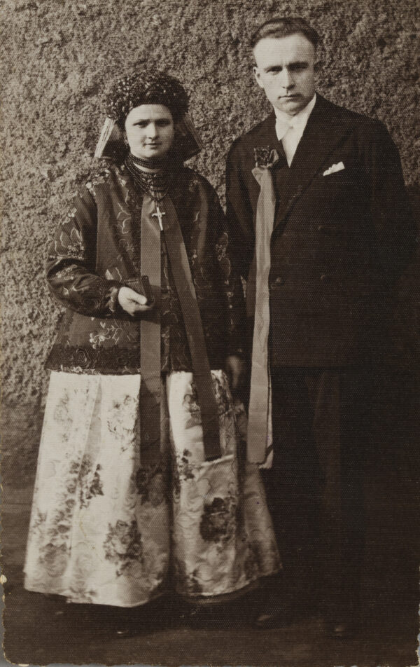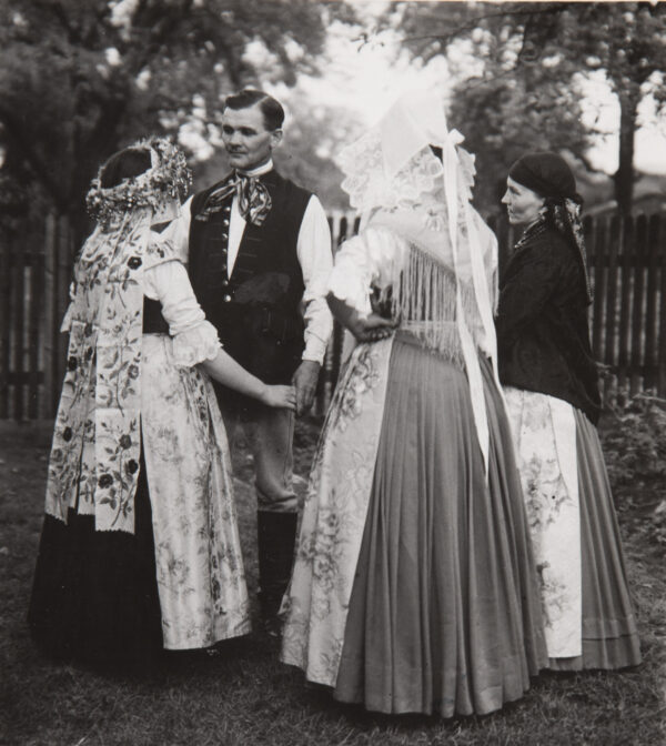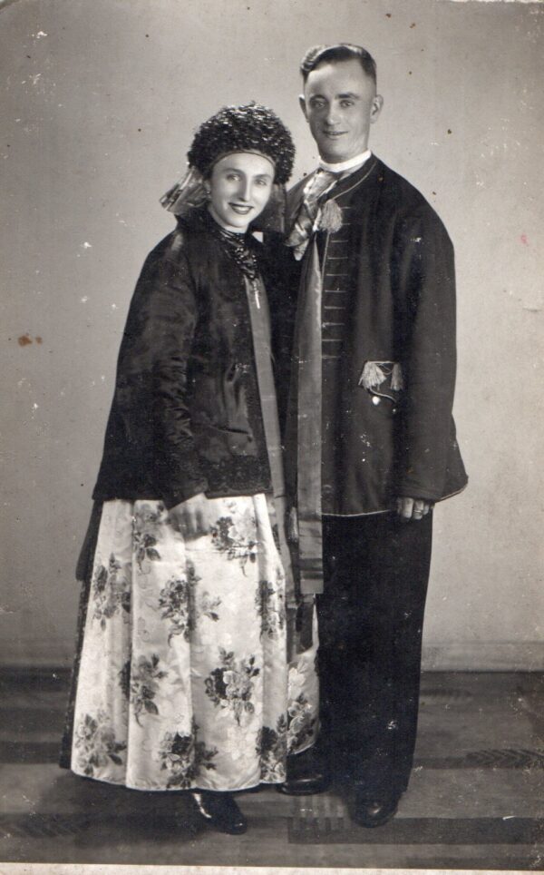 Strój odświętny natomiast szyty był całkowicie z tkanin fabrycznych, a poszczególne jego elementy miały charakterystyczny krój i zdobnictwo. Składał się z koszulki zwanej kabotkiem, spódnic, kiecki, gorsetu czyli wierzchnia, chusty merinki lub jakli, zapaski czyli fortucha, czepca lub chusty purpurki oraz korali, obfitował także we wstążki, hafty i koronki.
