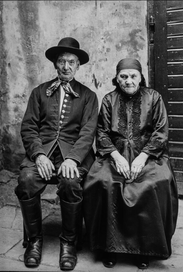 Na wierzch zakładano sukmanę o podobnym kroju i zdobieniach. Inaczej niż przy kamzeli i brucliku płoszcz zapinany był na haftki i miał pionowe kieszenie wykończone haftowanymi kwiatami bądź brokatowym naszyciem. Jeszcze z końcem XIX wieku tylko żonaci mężczyźni mogli nosić sukmanę.