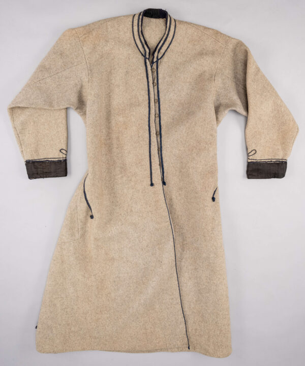 Wierzchnim okryciem były płótnianki lub sukmany. Te pierwsze nosili biedniejsi chłopi, których nie było stać na zakup sukmany. Miały one podobny krój do sukman, ale szyte były z grubego lnianego płótna. Sukmany w tym regionie występowały w trzech kolorach: brązowym, grantowym i siwym. Były długie za kolana, miały wcięcie w pasie, a dwa przody nakładane były na siebie. Lekko rozszerzały się ku dołowi, a z boku na dole miały drobne rozcięcie. Po bokach bywały dwie cięte kieszenie ukryte w szwie. Wokół szyi była niewielka stójka. Rękawy były wszywane, miały doszyte pod pachami wtoki i klin, a mankiety były obszyte materiałem w tym samym kolorze, co sznurek stosowany do zdobienia sukmany. Sukmana zapinana była od stójki do pasa na kilkanaście metalowych haftek. Zdobiona była szamerunkiem wykonanym ze sznurka – w brązowych sukmanach miał on kolor żółty lub czerwony, w granatowych – zielony lub niebieski, a w siwych – niebieski. Sznurek był ozdobnie naszyty na stójce i ciągnął się dalej wzdłuż zapięcia do pasa. Ozdobnie obszyte były nim także rozcięcia z boku i na plecach – w okolicach pasa, niewielkie rozcięcia u dołu sukmany oraz dolny brzeg rękawów. Boczne rozcięcia były dodatkowo ozdobnie zakańczane np. trzema pętelkami czy pomponikami.