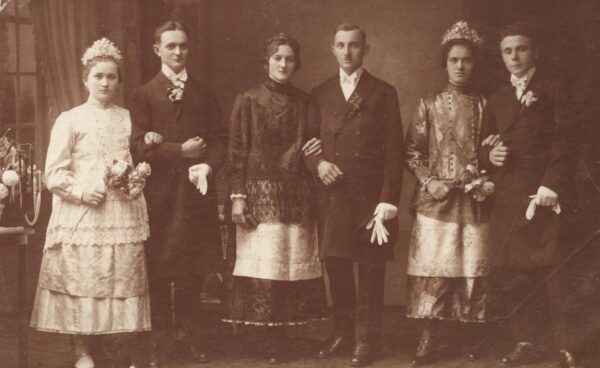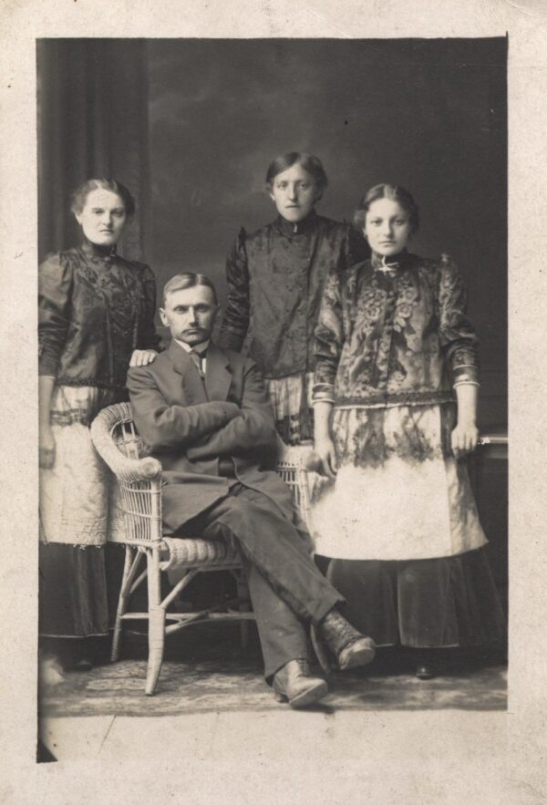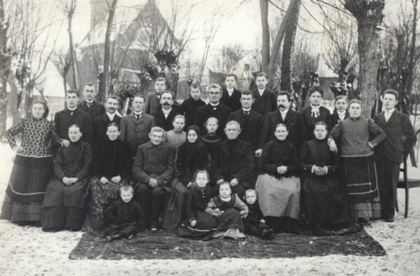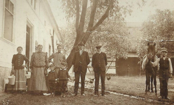 Od końca XIX, a zwłaszcza od początku XX wieku ubiór gospodarza nie różnił się już od ubioru miejskiego. Składał się ze spodni, marynarki i kamizelki uszytych z ciemnych tkanin wełnianych oraz białej koszuli z dopinanym kołnierzykiem. Szyciem ubiorów męskich zajmowali się wówczas krawcy cechowi, którzy dysponowali też tkaninami przeznaczonymi na garnitury. Dodatkowo na głowę mężczyzna nakładał filcowy kapelusz, a na nogi trzewiki albo sznurowane półbuty, do pracy zaś ‒ buty z cholewami.