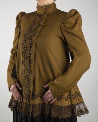 Do przełomu XIX i XX wieku komplet kobiecego stroju składał się z kiecki na lajbiku i jakli. Kieckę szyto z wełny, aksamitu, kaszmiru bądź pluszu najczęściej w kolorze czarnym, brązowym, zielonym, granatowym lub czerwonym. Była długa, pofałdowana w talii, o półokrągłym dekolcie, dołem obszyta pasmanteryjną taśmą z krótko przystrzyżonymi nitkami zwaną polisbortą lub plisbortą. Spódnice dołem ozdabiano tolkrouzą, czyli drobno rurkowaną falbaną. Krouza byłą uszyta na podszewce z tego samego materiału co suknia, mogła być pojedyncza lub podwójna. Lajbik – ponieważ nie był widoczny – szyty był z tańszych materiałów jak płótno czy flanela. Z tańszego materiału, zazwyczaj kretonu, szyto także suknie do stroju codziennego. Pod kieckę zakładano kilka spódnic, a na wierzch jaklę rozszerzaną ku dołowi, z długimi rękawami szytymi z dwóch profilowanych części. Przy dekolcie była stójka, czasem ozdobiona pasmanteryjną koronką.