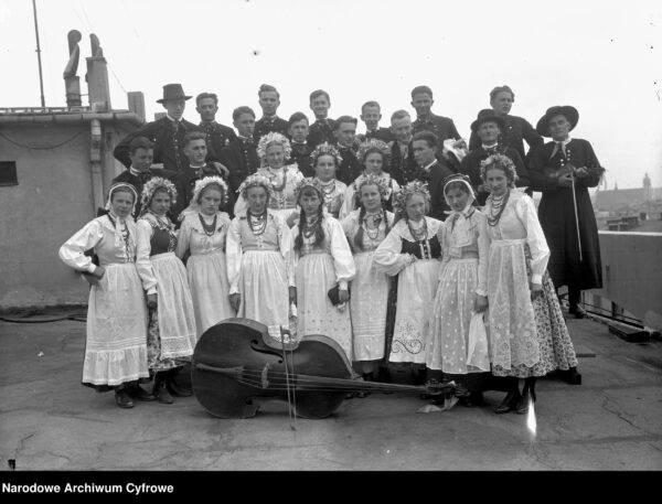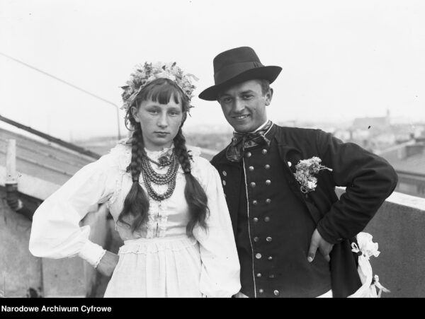 Na głowie panny nosiły trzykwaterkowe haftowane czepki, które nie zakrywał całej głowy, a wyłącznie jej czubek. W dawnych czasach noszono czepki wykonane z batystu, następnie te wykonane na szydełku, a ostatecznie – tiulowe z białym haftem. Czepki obrębione były tiulkami, czyli materiałem zszytego w zakładki materiału. Po dwóch bokach czepca zwisały wiązadła, czyli dwie haftowane wstęgi, które zawiązywano w kokardę tuż pod szyją. Dość osobliwym nakryciem głowy był również wieniec noszony przez druhny podczas ślubu. Do płóciennego czepca przyszywano dużą ilość różnokolorowych wstążek i innych świecidełek oraz roślin, typu mirtu. W tyle doczepiano szerokie wstęgi w różnych kolorach, które wiązano w kokardę.
