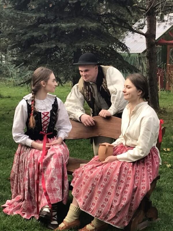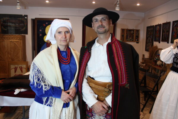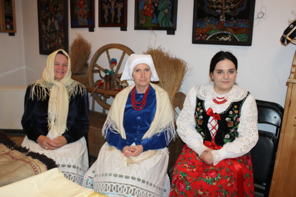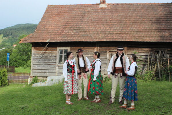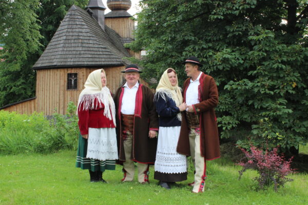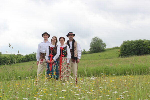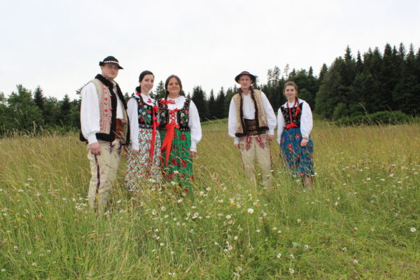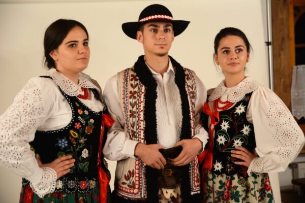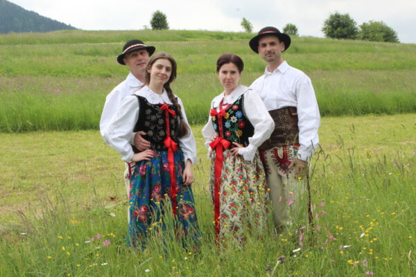 Poszczególne elementy odzieży wytwarzano z różnych rodzajów tkanin. Spódnice, fartuchy, rańtuchy oraz koszule damskie i męskie szyto z wyrabianego w domach cienkiego, samodziałowego płótna lnianego, portki, hazuki, baje i kapelusze z sukna owczego – runa białego lub czarnego, serdaki i kożuchy z futer baranich a kierpce i pasy ze skór bydlęcych. Cieplejszą odzież szyto z sukna spilśnianego w wiejskich foluszach. Hazuki i baje sporządzano z czarnego runa owiec, natomiast portki z białego.